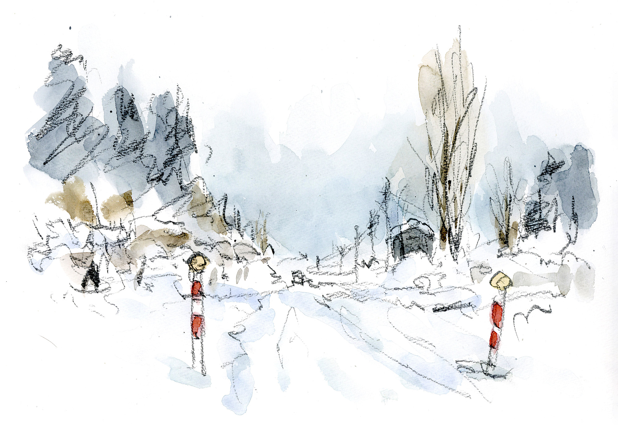そして、ようやく辿りついたのが、この「赤屋根の民家」の津軽の冬景色・・・